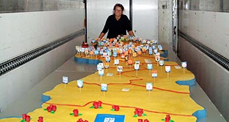 Alla kommuner som var med fick sitt kommunvapen på tårtan och även namn. Rosorna symboliserar kommunerna som inte ville vara med.